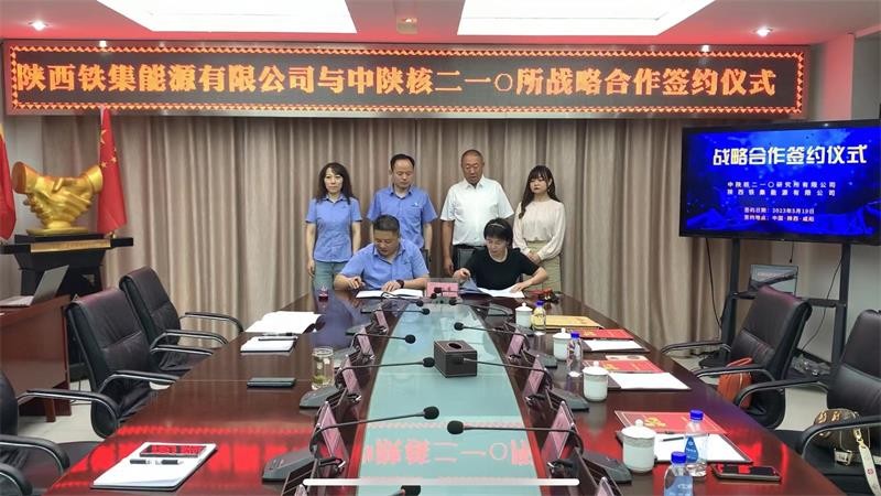 中陜核二一〇研究所總經理李偉,陜西鐵集能源有限公司張敏分別代表雙方簽署戰略合作協議。