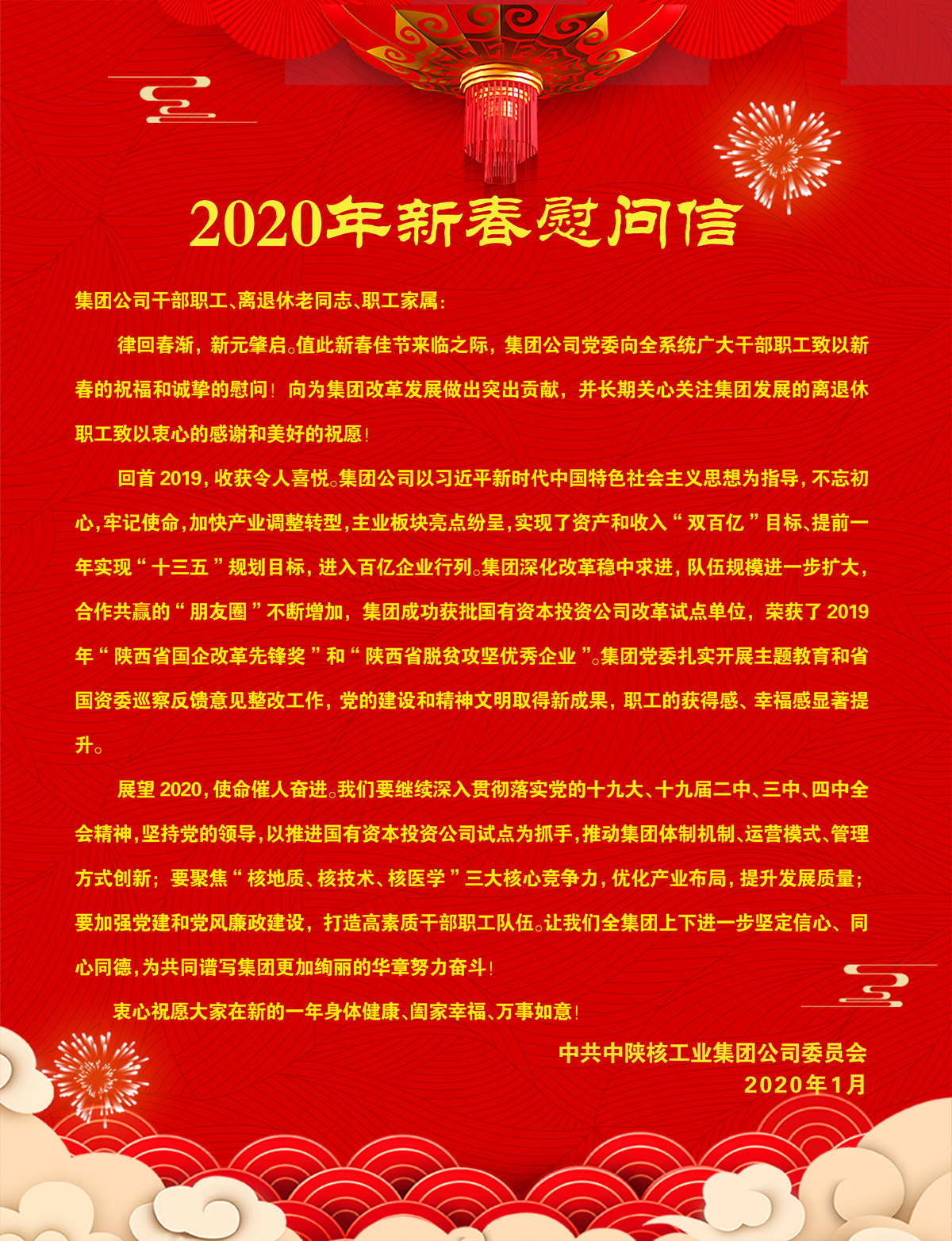 中陜核工業(yè)集團(tuán)2020年新春慰問信