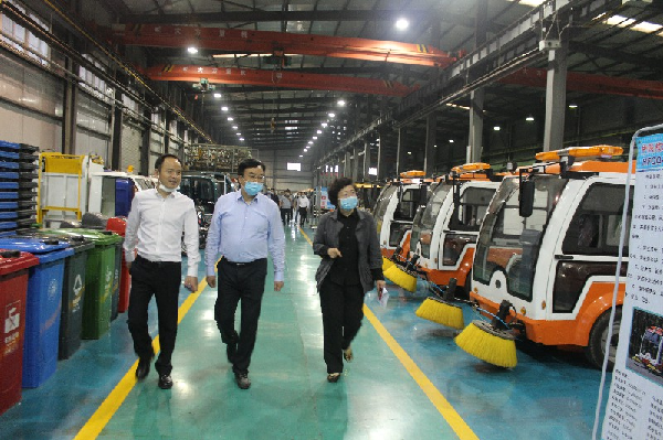 汪文展一行首先參觀了各產(chǎn)業(yè)板塊的生產(chǎn)車間,聽取了公司近幾年來在科技創(chuàng)新、制造研發(fā)等方面的成果,在觀看了新能源清掃機(jī)的實(shí)地演示后,雙方在二樓會議室進(jìn)行交流座談。