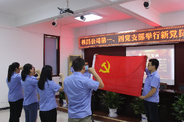 值此中國(guó)共產(chǎn)黨成立九十九周年之際,7月1日上午,核昌公司第一、四黨支部在公司大會(huì)議室舉行新黨員入黨宣誓儀式。參加儀式的有公司黨委工作部部長(zhǎng),團(tuán)委書(shū)記,第一、四黨支部全體黨員、入黨積極分子。大會(huì)由第四黨支部書(shū)記楊艷主持。
